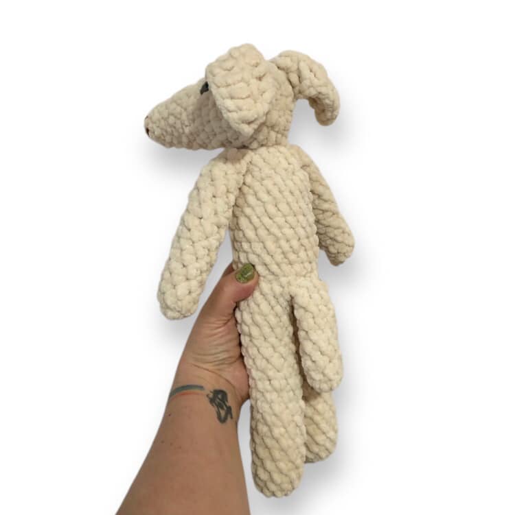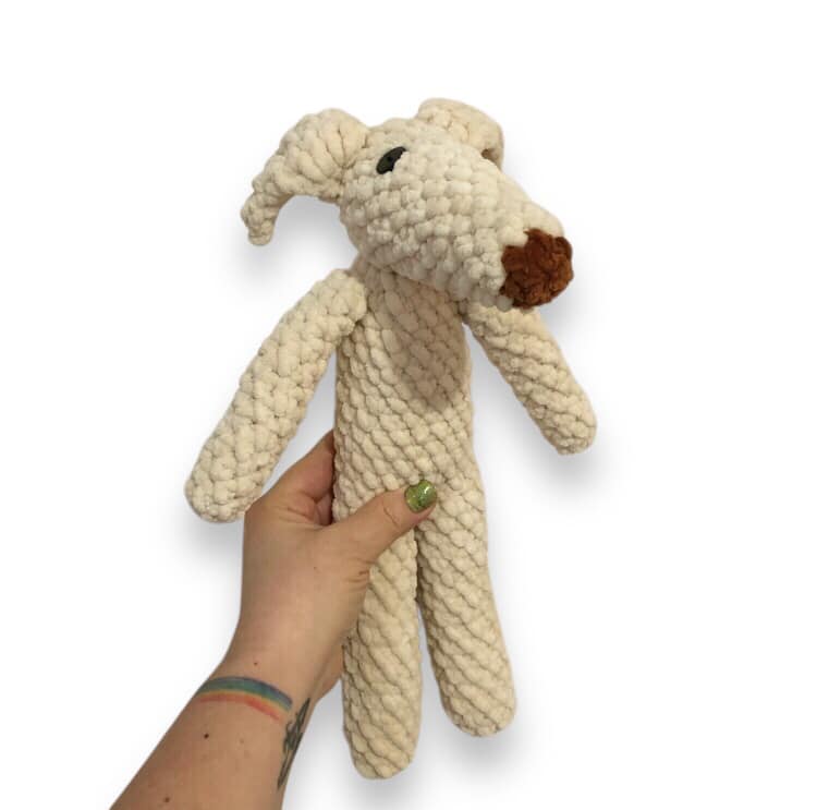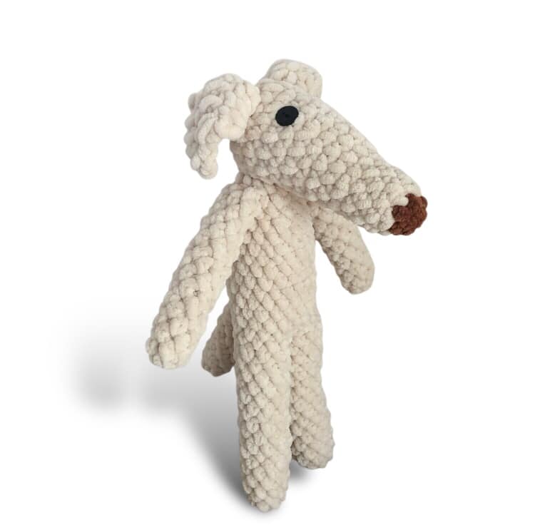 - Finished size: approximately 14 inches tall—a perfectly huggable borzoi unit.