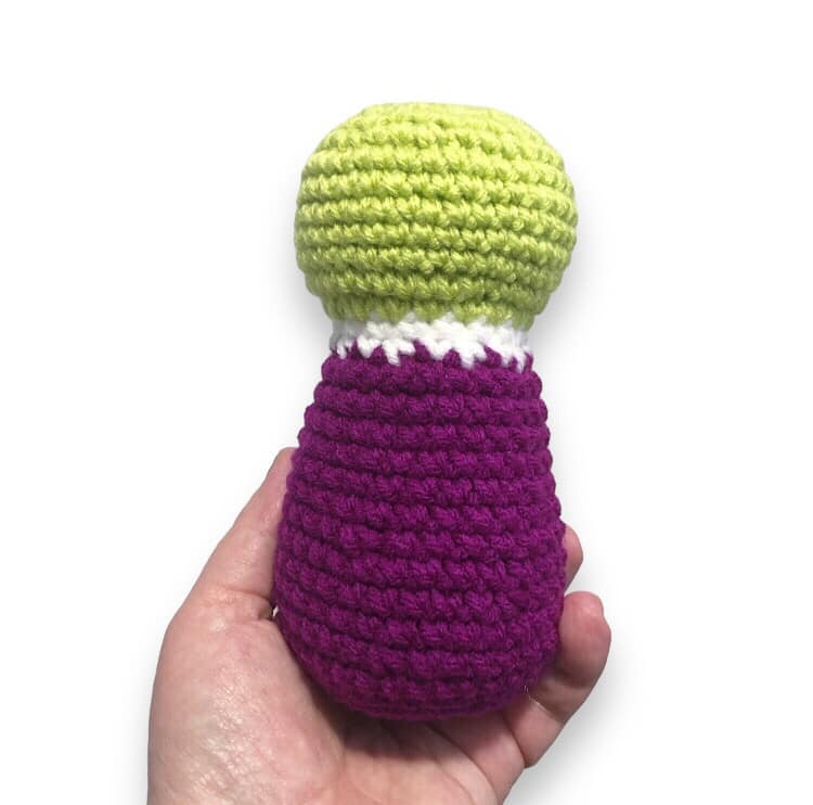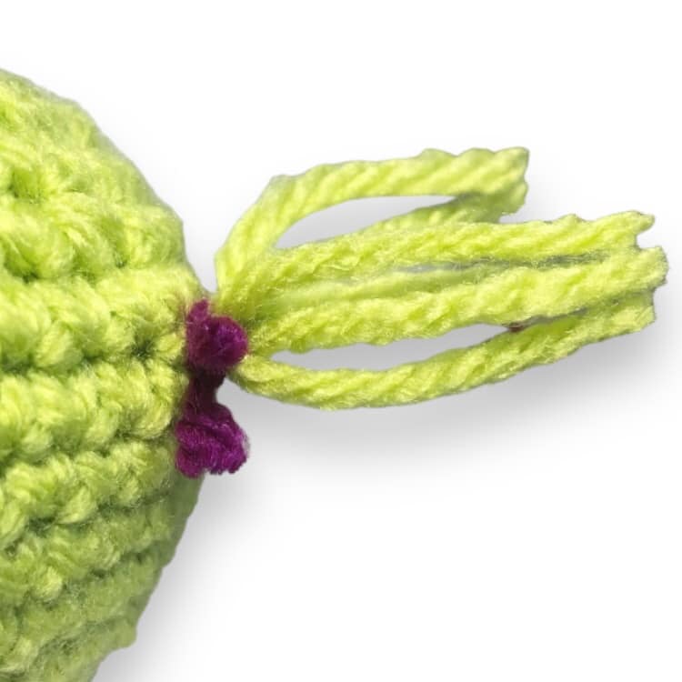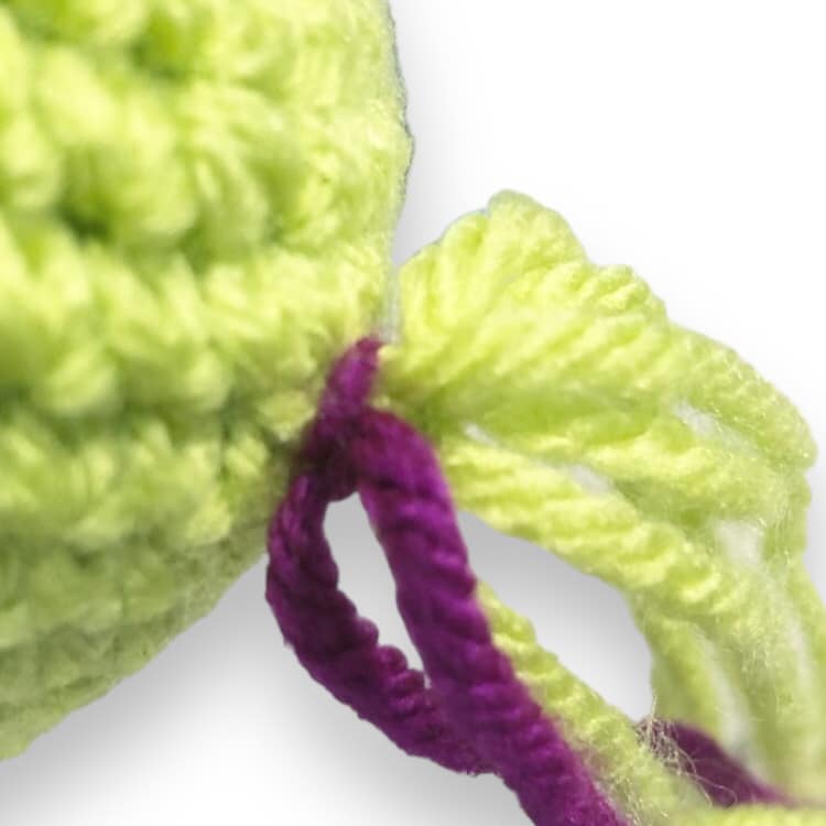 • 50 grams each size 4 worsted weight yarn in Purple, Light Green