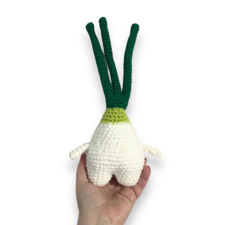 - The Green Onion’s legs and body are worked in one piece (because I’m nice like that).
