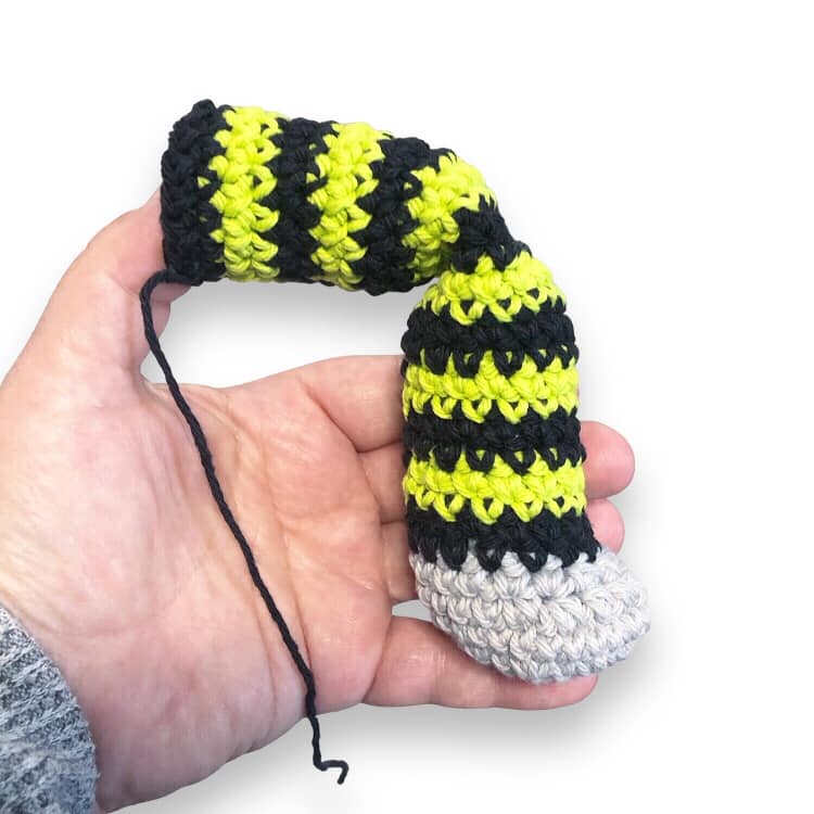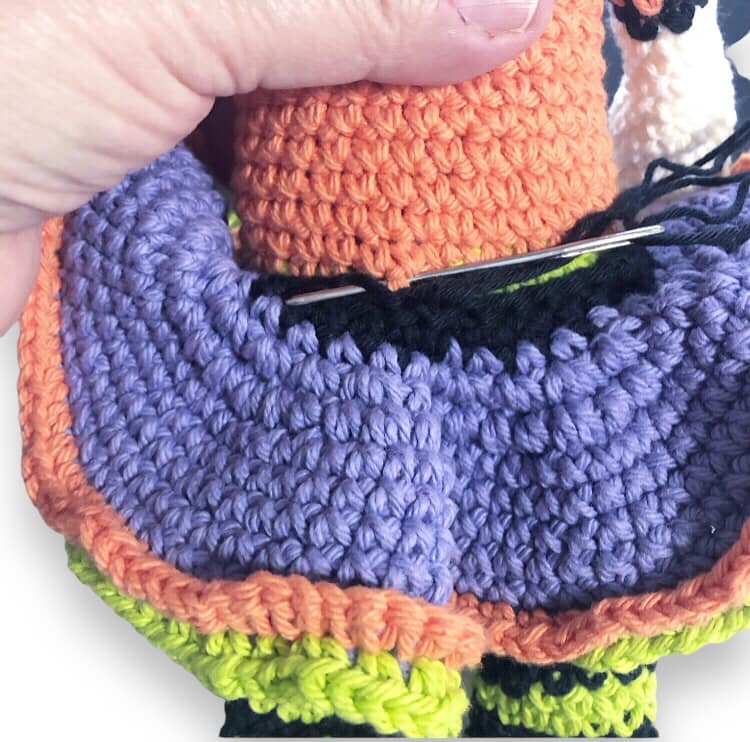 • Jane's arms, skirt, hood and eyes are worked separately.