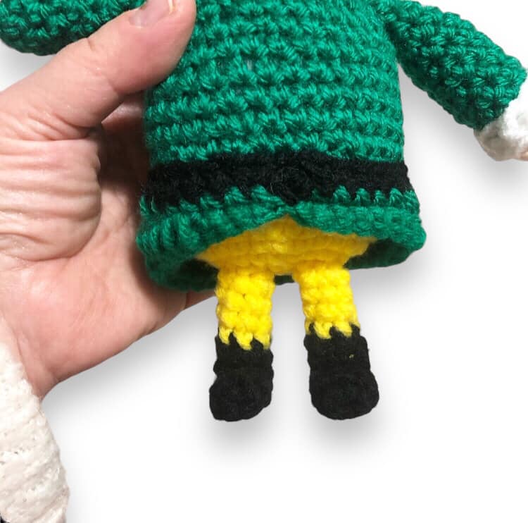 Limbs and accessories are crocheted separately and sewn onto the body.