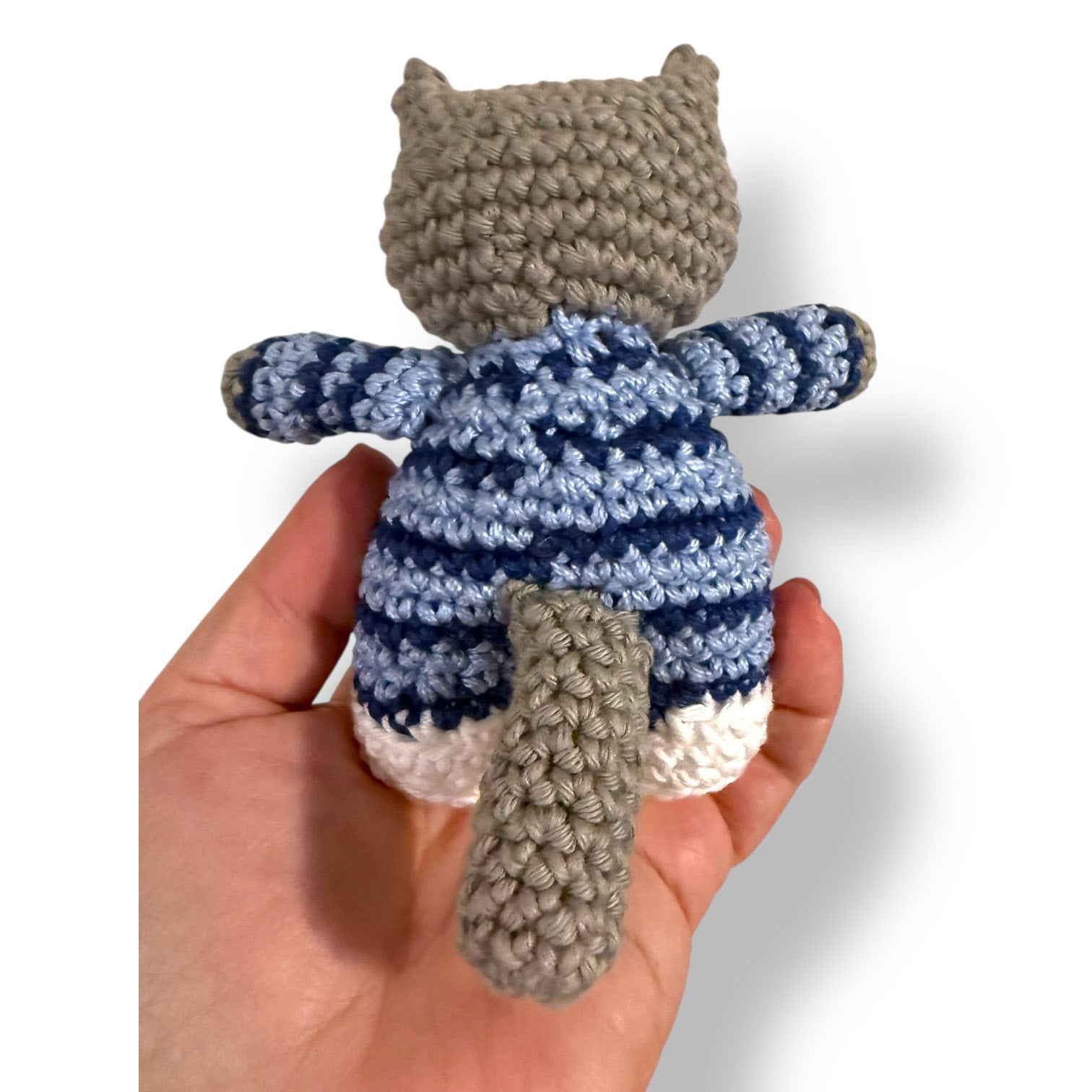 You will receive a detailed, photo-supported PDF crochet pattern to create a cat measuring approximately 6 inches tall. The design is worked mostly in one piece, with separate arms and tail for straightforward assembly and a clean, polished finish.